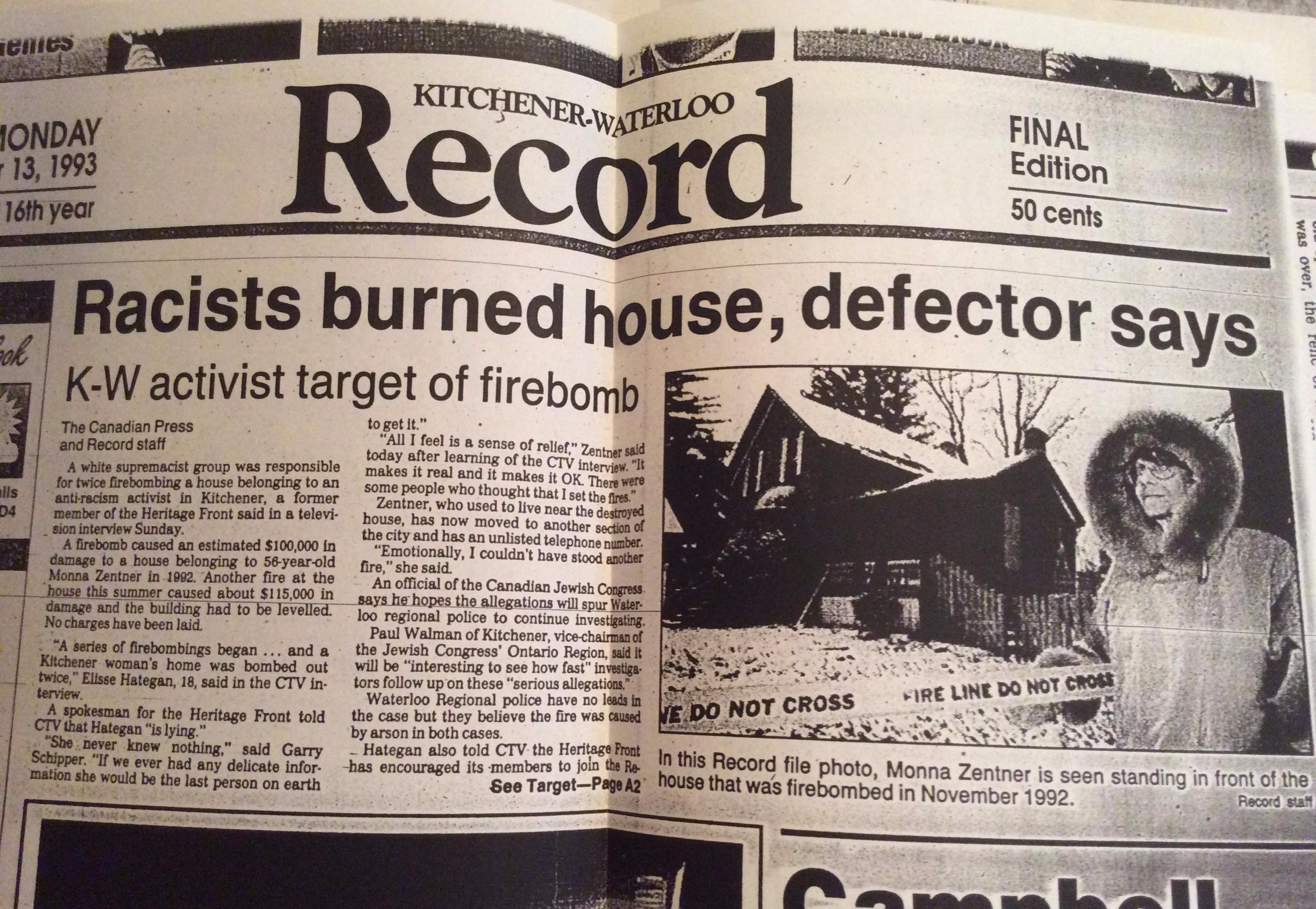 Canadian Press. "Racists Burned House, Defector Says." Kitchener-Waterloo Record, December 13, 1993.
